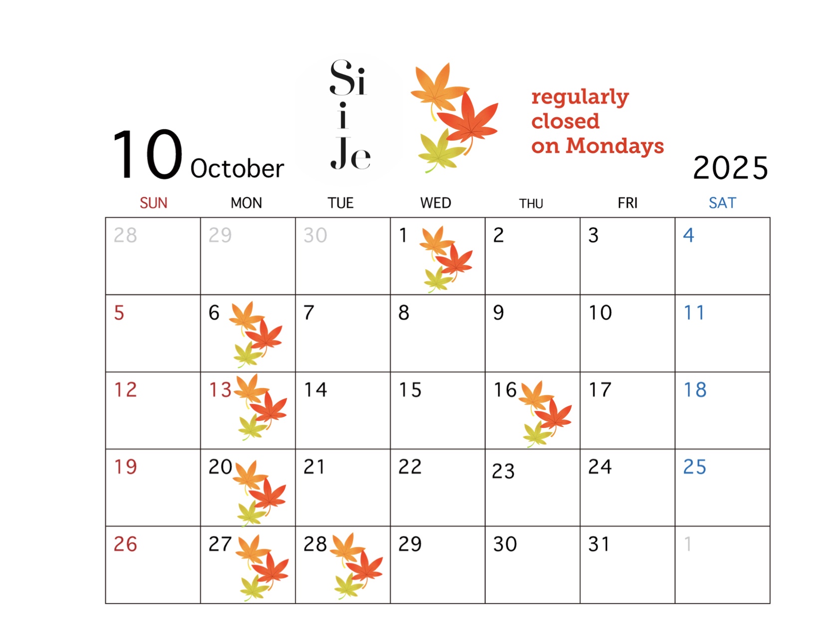SiiJe~シイジ~11月(10月)休業日のお知らせ✂️