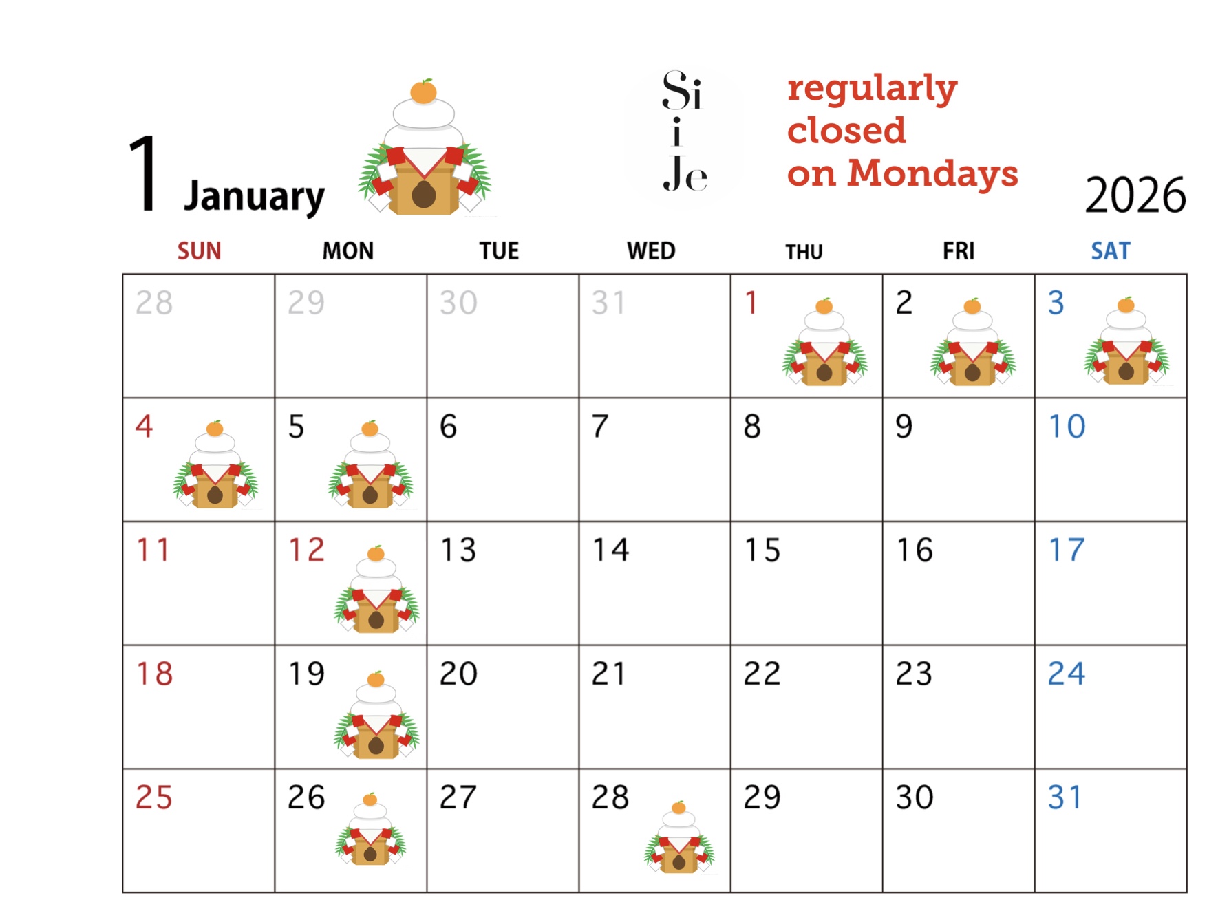 SiiJe~シイジ~1月(12月)休業日のお知らせ
