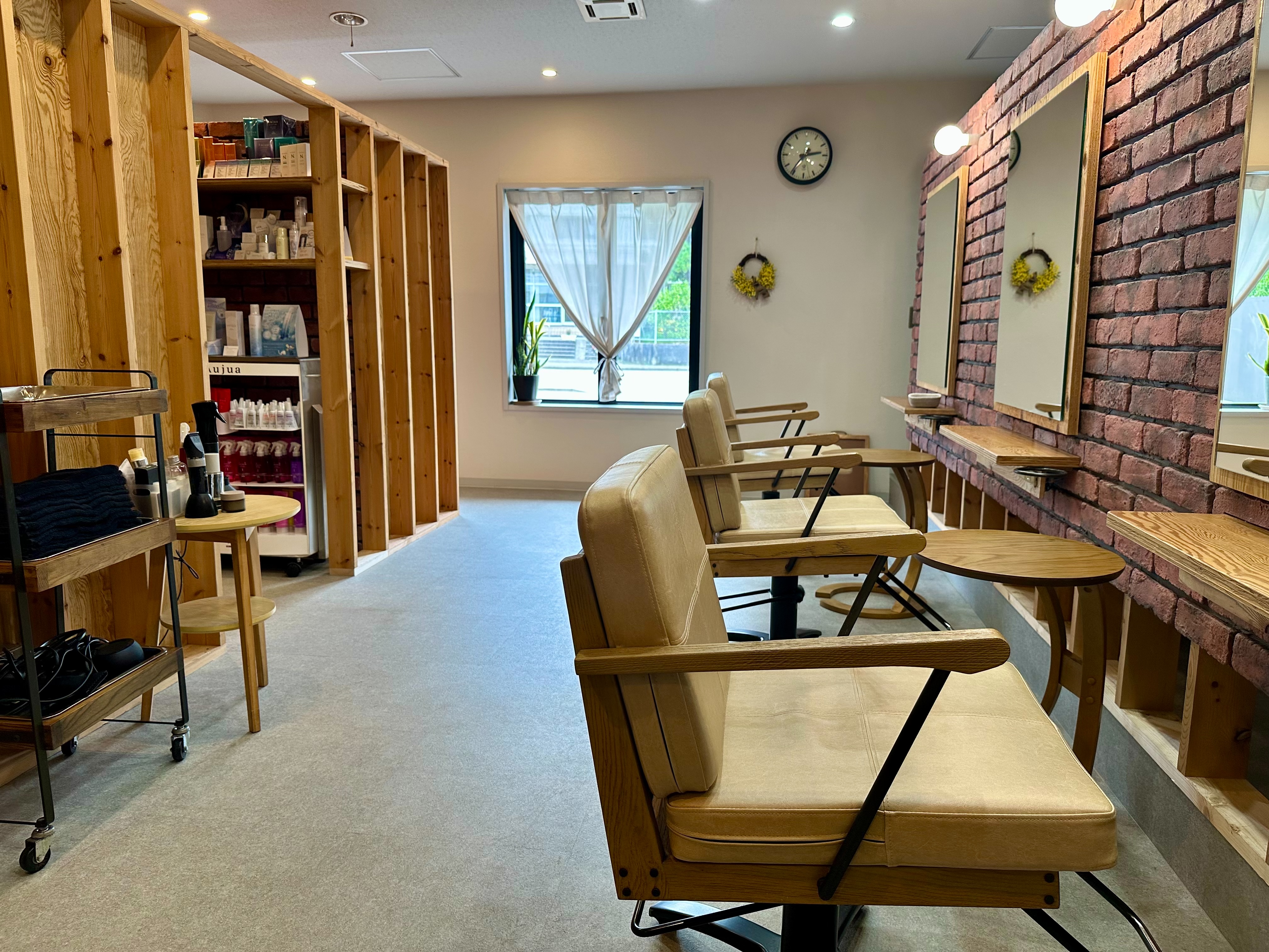 レンガと木のぬくもりが居心地のいい小さなサロンです。定期的に訪れる場所である美容院を